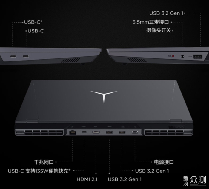 联想的本子整体上做工还是很不错的,前几代的拯救者R9000P的机器都是很受欢迎的。搭载的也是锐龙6800H CPU,最大CPU满载工好可以达到85W。另外显卡也是140w满血版3060。联想的本子整体散热设计还是很不错的,左右再加上后面一共有四个出风口,另外在A/D面采用的是双面金属机身,还有一个专属可以控制的大“Y”灯,在接口方面也是属于能给你的就全都给你了。