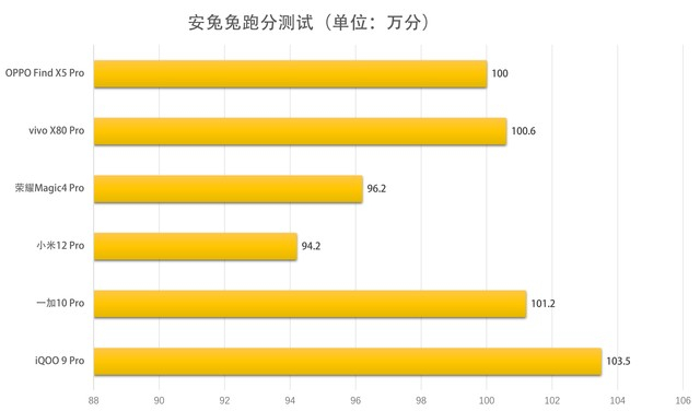 从数据来看,结果和预期差不多,6款机型整体跑分都在90万分以上,处于当下旗舰机型的第一梯队,其中iQOO 9 Pro表现较好,达到了103万,小米12 Pro稍差,只有94万分,不难看出,尽管大家芯片相同,但多多少少还是有些差异的。