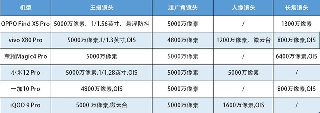 老规矩,在对比样张前,我们还是先来看一看六款旗舰的影像规格:
