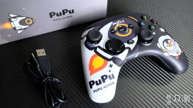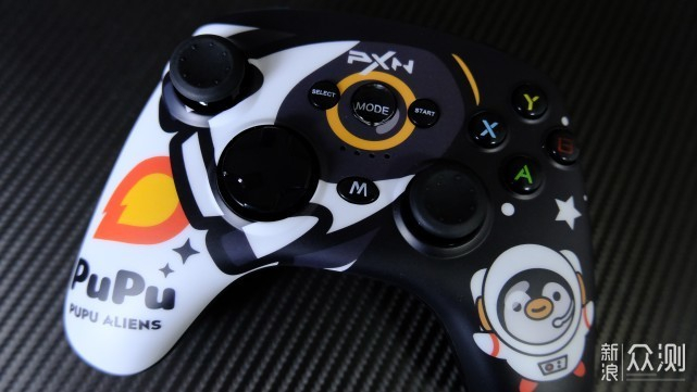 ▲我收到的这款游戏手柄上面就已经使用了黑白配色的PuPu面板,我觉得这个配色是比较耐看的,上门用了一点红色与黄色来点缀就显得更有活力了。