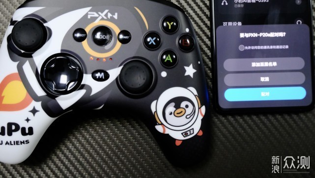 ▲首先在手柄关机的状态下长按3秒Mode按键+A键,成功打开这个蓝牙模式时手柄上第一和第三个指示灯会常亮,这时可以打开手机找到PXN-P20a的蓝牙信号,选择与之配对就行了。