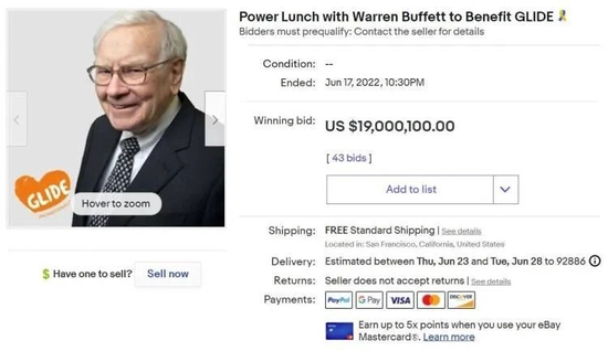 2022年的“巴菲特慈善午餐”经过一周的连续竞拍,今天上午拍卖正式结束。截至美国东部时间6月17日22:30(北京时间6月18日10:30),最终以1900万美元(约合人民币1.28亿元)成交,拍卖价远超此前记录。
