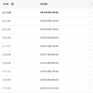 据eBay官网统计,总计有43次竞标,直到截止拍卖前的最后30秒,价格还在1300万美元,此后竞拍价格飙升,最后的竞逐在3号买家和10号买家之间展开。