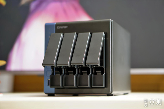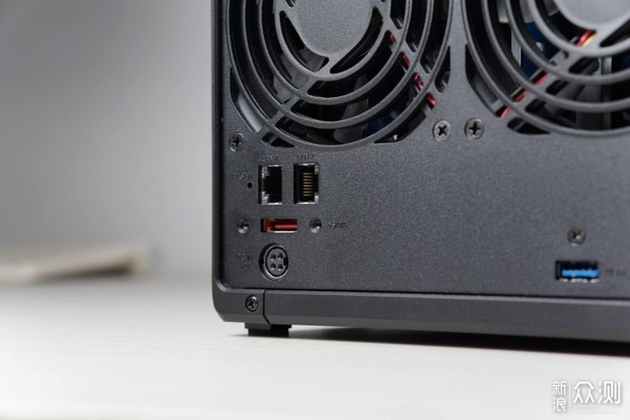 ▼在TS-416的背面拥有两个千兆网口以及两个USB2.0接口和一个USB3.2 gen1接口,适合做链路聚合或者是一端连路由器一端直连PC设备,给ARM平台放双网口一向是威联通NAS的优点,需要注意TS-416没有HDMI输出接口哦。相较TS216的NVME缓存盘的加入,个人认为还是4个3.5英寸盘位更值得入手。