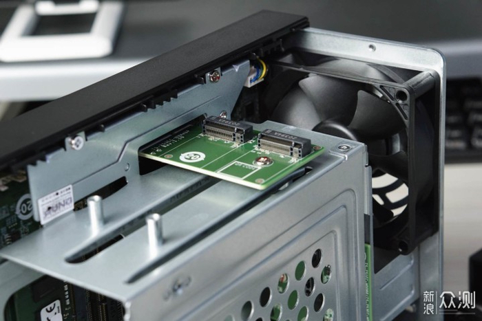 ▼硬件性能上具备采用J4125处理器,8GB内存,配备了双2.5G网口,前置有Type-C(3.2 Gen1)接口与USB3.2 Gen 1接口,支持适用M.2固态硬盘做缓存,背后硕大的14cm风扇能够保证设备低温运行,在使用中基本上不回听到噪音。