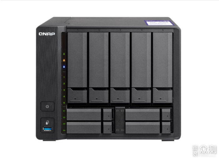 威联通951N,951N最大的亮点是提供了9个盘位,既适合中小型企业,也适合日常家用。赛扬3865U双核处理器,性能也还行,拥有5Gb网口1个,千兆网口一个。