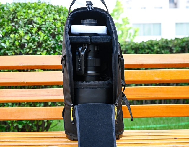 为了方便用户携带,尼克尔 Z 800mm f/6.3 VR S还配置了专用镜头包,镜头包保护的很到位,内部还有海绵衬垫固定镜头。