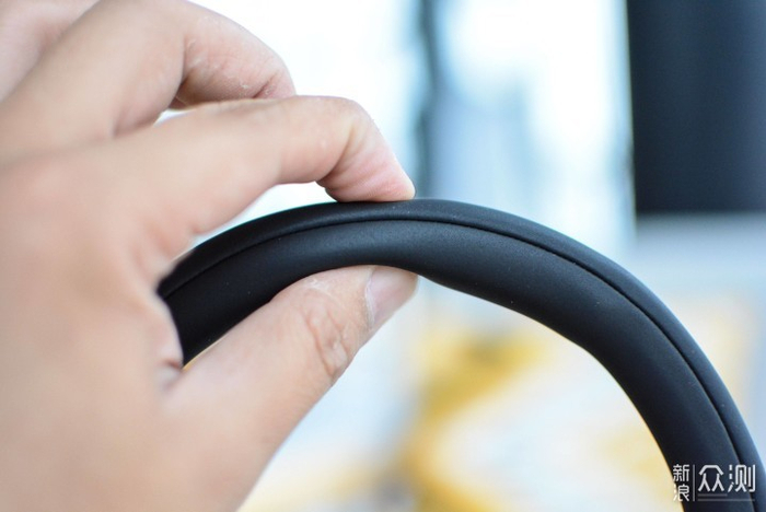 索尼WH-1000XM5的头梁,对比前代来说,明显进行了轻量化设计,弹性和柔韧性非常出色;材质方面内外都是皮革,外层也有弹性;而内部弹性更强,佩戴的时候舒适度很高。