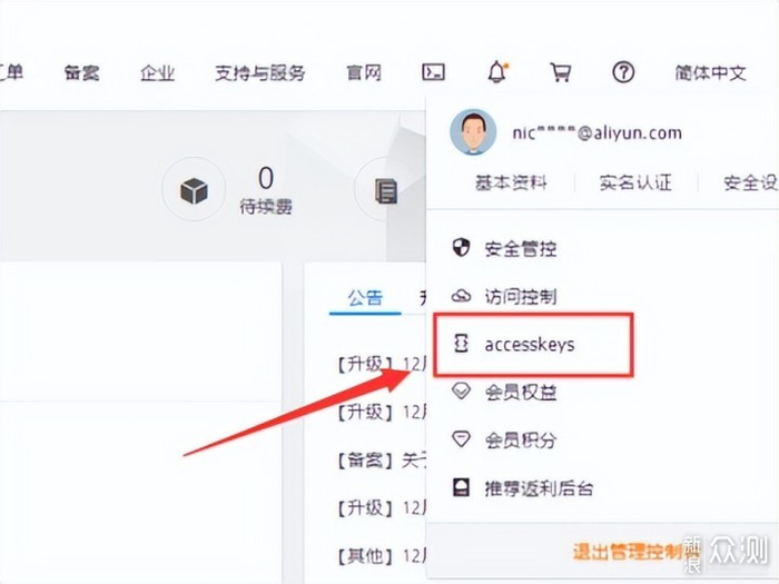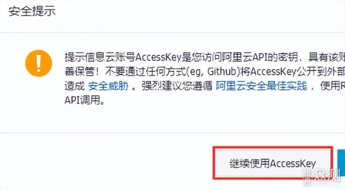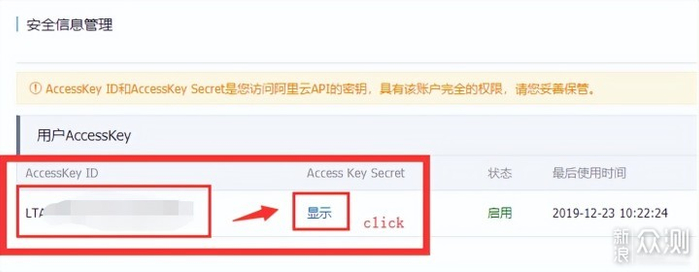 ▼就能够获取到Accesskey ID 与Access Key Secret了,这时候页面保持住,或者将两个信息复制进入记事本。