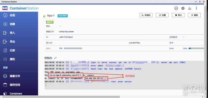▼在container Station中查看运行状态,图中的两个链接都可以访问NAS。