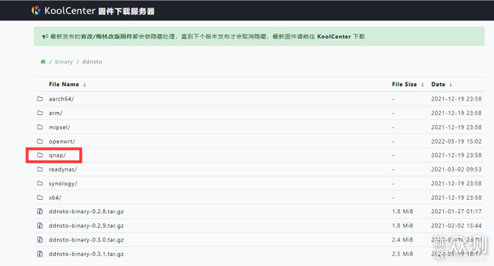 ▼在koolcenter中找到适合自己NAS的安装包,适用于群晖、Openwrt软路由等设备,记得选择对自己的设备类型,是X86还是arm,TS-416是arm的。