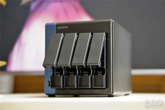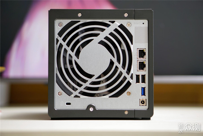 ▼在TS-416的背面拥有两个千兆网口以及两个USB2.0接口和一个USB3.2 gen1接口,适合做链路聚合或者是一端连路由器一端直连PC设备,给ARM平台放双网口一向是威联通NAS的优点,需要注意TS-416没有HDMI输出接口哦。