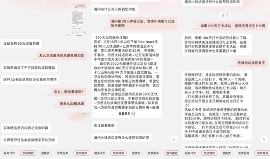 记者就此咨询Pico电商平台客服,客服称不激活也可以体验,激活后可以退款,但一旦激活虚拟赠品,则虚拟赠品需要扣款。