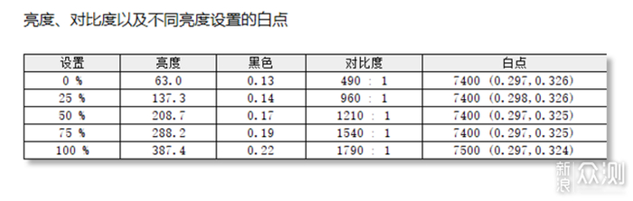 亮度方面需要开启风景模式才可以设置屏幕亮度,实测最高亮度387.4nit,黑色0.22,对比度的表现也十分优秀,具备HDR效果的实力。