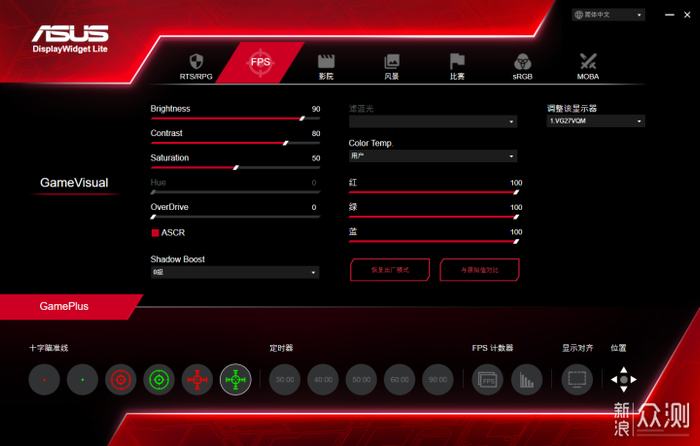 不过最香的还是这款ASUS Display Widget Lite软件,可以在电脑上安装后直接进行参数设定。
