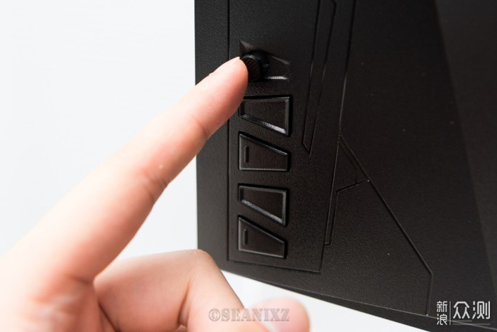 控制按键为实体按钮的形式,设计在了背面,不影响正面边框颜值,带有凹凸大小不同的外形设计,指触很容易分辨出来,尤其是上面的3轴调节按钮,非常符合我们的日常使用习惯,操作顺畅便捷。