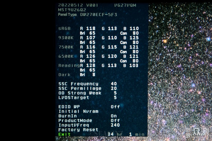 开启sRGB显示模式下无法调整参数,实测亮度93.7cd/m²,符合专业设局需求。