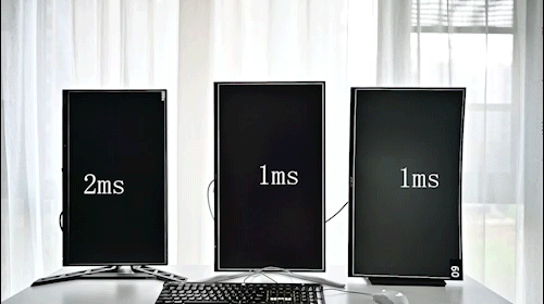 可以看到对比同样是1ms响应时间的显示器,华硕TUF GAMING VG27VQM显示白色画面相应与旁边的1ms速度相同,但是纯黑画面的显示要更快一些,有一定优势,这也是游戏的关键参数之一。