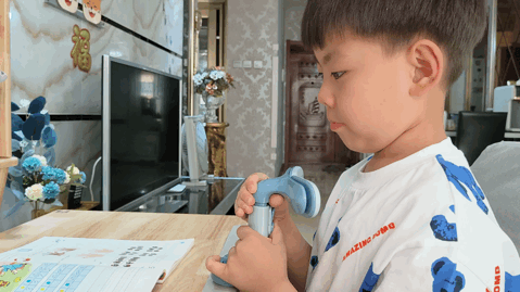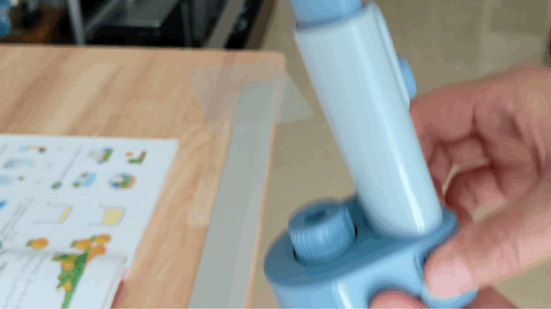 先取出坐姿矫正器,固定在孩子的书桌上。固定过程如下图所示,很简单,不管是楼主还是孩子,都可以轻松掌握操作方法,没有繁琐的操作环节。产品颜色总共有两类,即粉色和蓝色,孩子自己选择了蓝色,家里有女孩的可以入手粉色。
