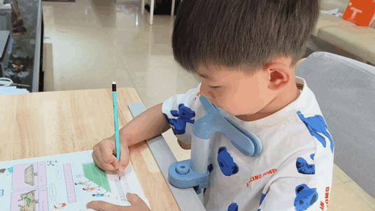 T型设计,书写更自由,曲线弧度,和孩子身体更好的贴合在一起。从下图中可以看到,坐姿矫正器很小巧,可以让孩子抬头挺胸,同时也不会限制孩子的视线与胳膊、手。