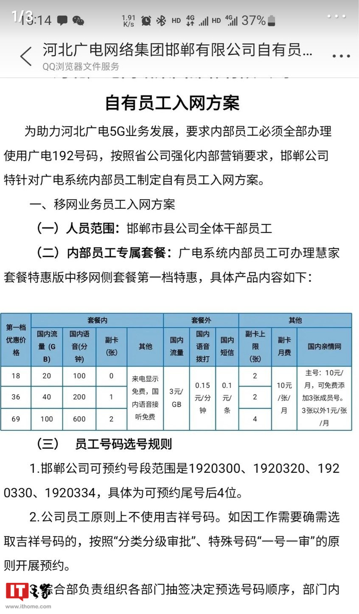 据网友爆料反馈,河北广电网络集团邯郸有限公司近期下发了自有员工入网方案,方案显示,“为助力河北广电5G业务发展,要求内部员工必须全部办理使用广电192号码,按照省公司强化内部营销要求,邯郸公司特针对广电系统内部员工制定自有员工入网方案。