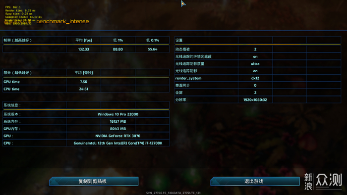 平均132.33FPS,CPU Time 24.61毫秒,GPU Time 7.56毫秒。