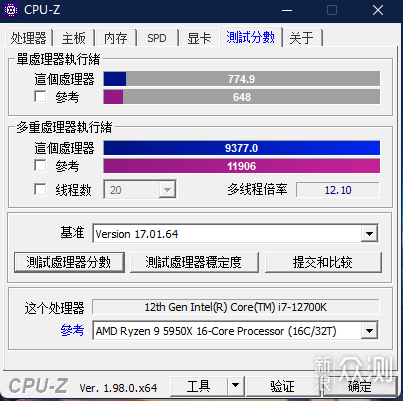 单核774.9分,多核9377分。