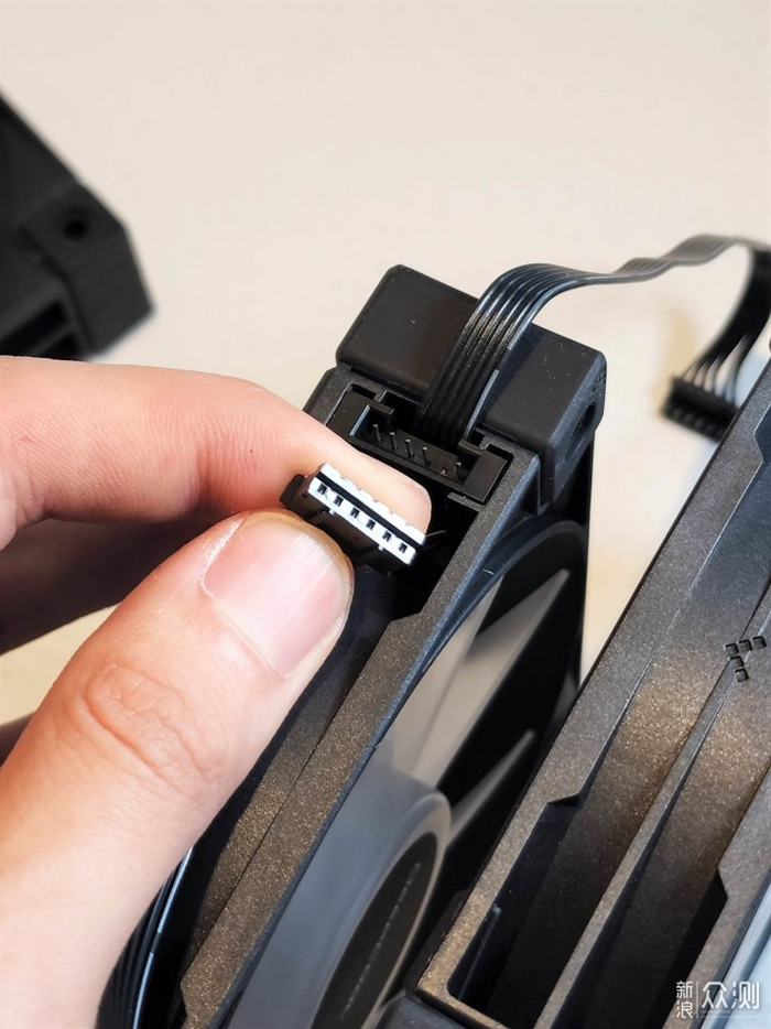 风扇接口串联设计,可以把风扇接到另外一个风扇上,等于自带了集线器,减少了不必要的线材,非常方便。