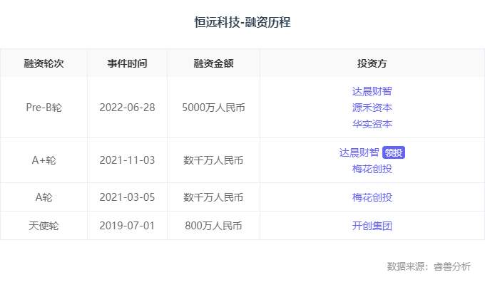 融资丨「恒远科技」完成5000万Pre-B轮融资,达晨财智、源禾资本、华实资本投资