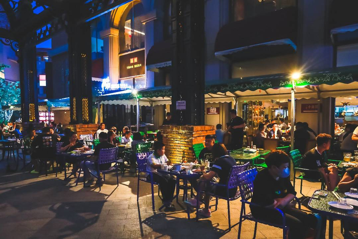 夜幕下的小味串店坐满了前来用餐的消费者