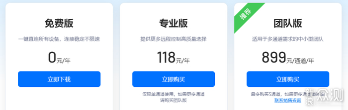 个人版的付费选择更丰富一些,但是有主机限制,且个人觉得有夸张宣传的成分在。几个付费版的差异并不大,游戏版的游戏体验并不好,延迟太高了,对操作有要求的基本玩不赢。游戏版是ToDesk专业版的近3倍价格,使用体验却没有TD强。