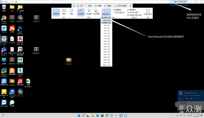 由于TV是国外的远控应用,在国内布置的服务器数量可能不及国产的两款远控,我在连接时常遇到显示异常的情况,比如桌面黑屏。分辨率方面来看,TV也有多种清晰度可选~