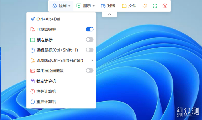 功能栏相对比ToDesk的会更加丰富一些,排列的顺序也有所出入。可以看出是更注重工作中的社交互动,可以主控被控一键切换,文件传输的调取及运作模式也很简洁。
