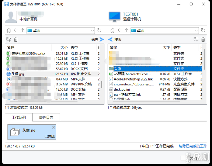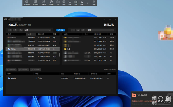向日葵的功能可以说非常丰富,差不多有十项,个人觉得有几个的标识其实没必要都放在顶部一级界面中显示,因为实在不常用,一眼看去不能直观点击常用的,需要一段时间去习惯。文件传输完成的提示在屏幕的右下角,与传输栏是分离的,稍多余。