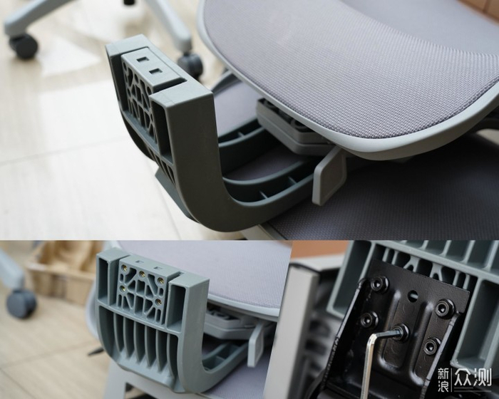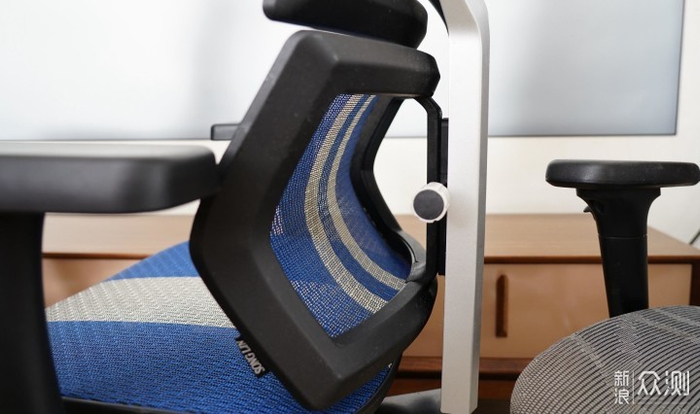 另外从腰背部的支撑,我比较喜欢新结构的3D浮动式设计,因为这个椅靠为四角悬挂式支撑,而中间为弹片式设计。