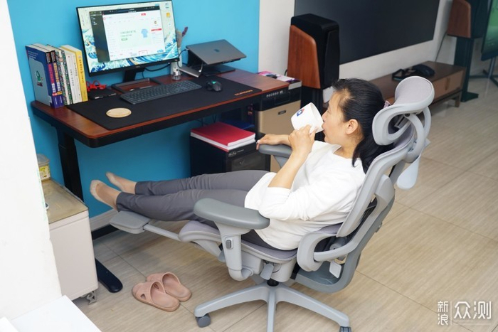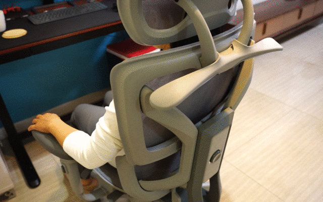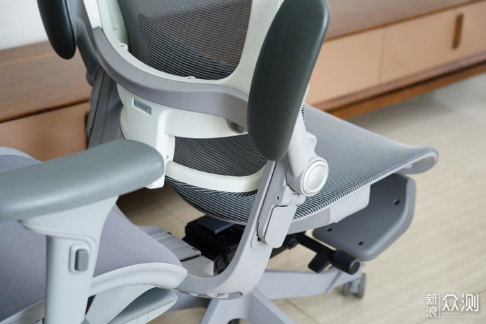 这样一来的好处是,纵使轻微转腰或者是歪着坐,整个椅靠也会形变调整贴合,保证背部整体受力,这点在劳累熬夜加班的时候是很实用的。