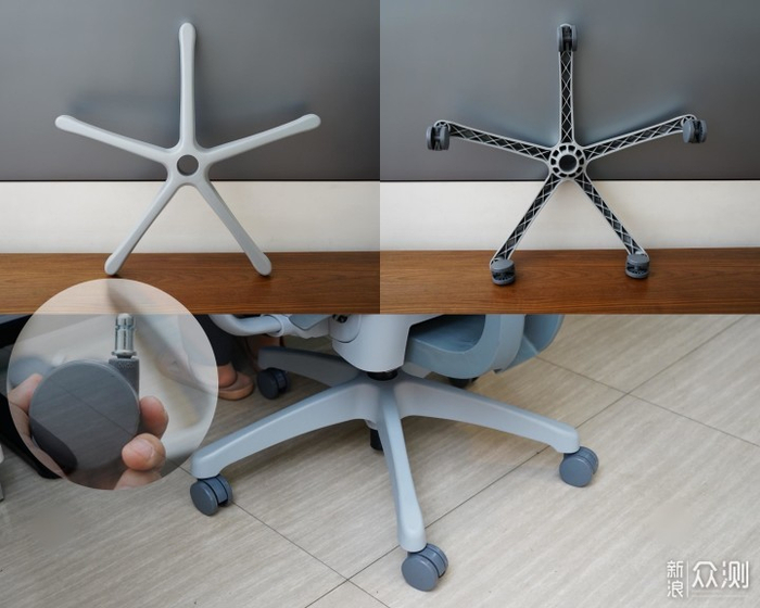 而且万向轮质量很好,使用时人体工学椅的轮子更顺滑、低噪。