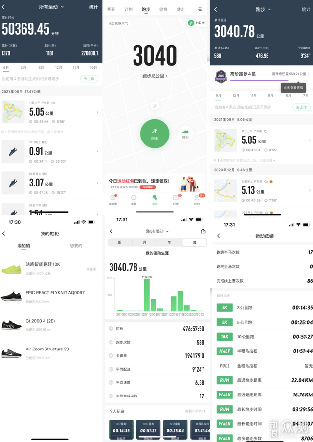 这几年下来,装备上其实也投入了不少成本,当然跑步的里程也随之增长了不少,累计已经有3000多公里的跑步里程,所有的运动时长加起来也有5万分钟。