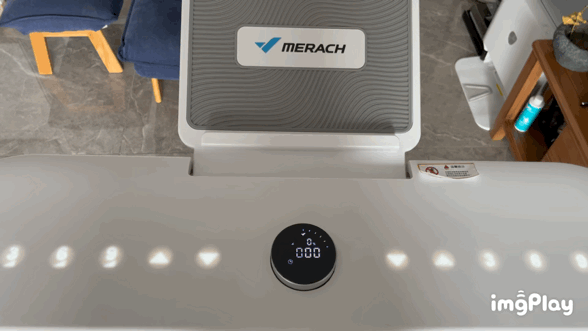 麦瑞克X1跑步机的正前方有一个非常好看的圆形开关及旋钮功能为一体的控制台,正上方是液晶显示屏,可以实现运行、暂停、速度调节功能,液晶屏会显示速度、坡度以及卡路里等运动数据。操作起来非常简单。按键采用的是触控的设计方式,机器开机之后就可以点亮,用手轻轻触控一下就好,灵敏度非常高,而且按键之间有足够的安全距离。