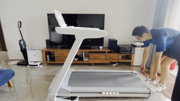 在正式进入使用之前,首选可以选择一个适合自己的高度,正常使用的话可以选择一个比较低的角度,就像平路上慢慢跑步的那种强度一样。当然在线课程的话跑步机会同步调整速度和坡度。