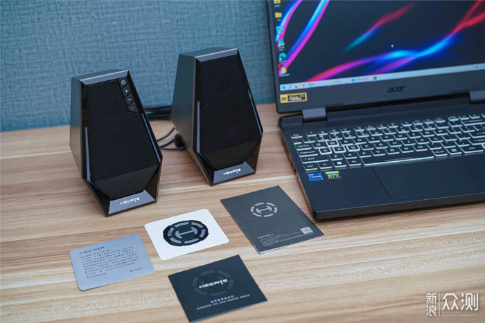 音箱内置2.5英寸全频单元大喇叭,每个单元5W,最高10W的峰值功率,音量恰到好处,有一定的“脱箱感”,不像某些音箱外放声音过大造成桌面共振影响使用体验。