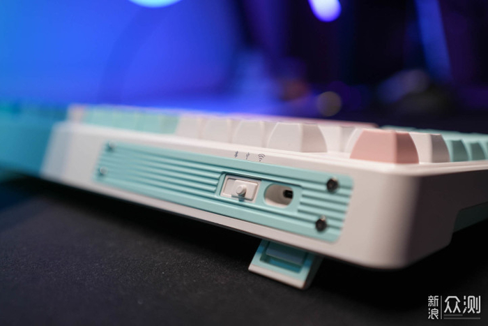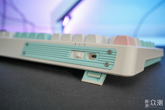 两段式支脚满足玩家的高度需求,机械键盘由于其厚度,用的时候建议抬高键盘垫个手托。