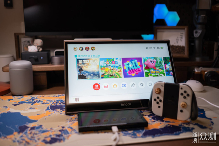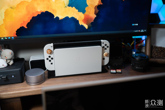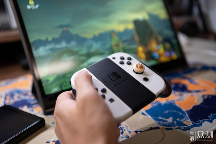 我使用的是Switch OLED版本,既可以将主机放在底座上使用HDMI连接。