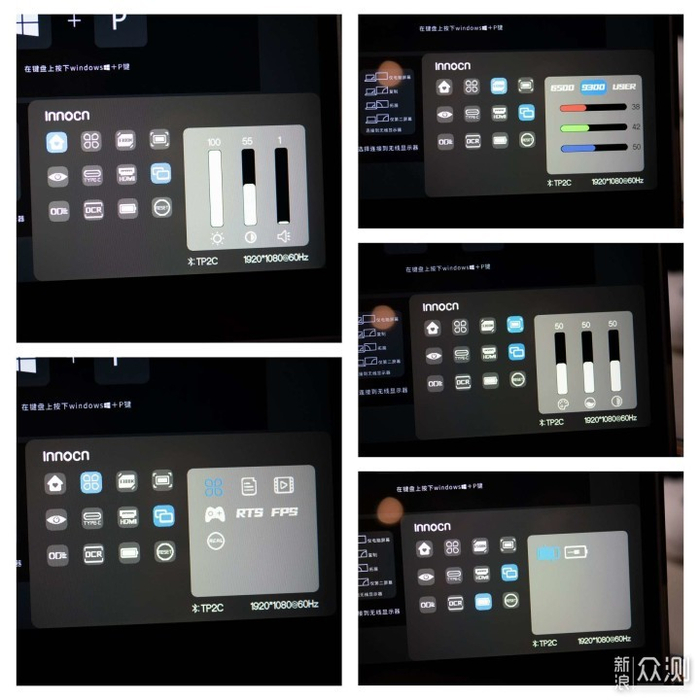 因为支持触摸操作,所以屏幕的OSD菜单也是通过触摸调出,在菜单内可以对显示器的亮度、对比度、声音、情景模式、色温、输入端口等进行选择。