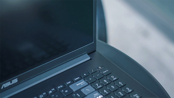 华硕灵耀Pro16 2022的电源键并不像其它笔记本放在侧面,也不是单独放在键盘区域外,而是直接整合在键盘里面。与此同时,它还整合了指纹识别功能,录入指纹之后,按压触摸键盘,就能实现开机点亮并识别指纹自动登录系统的全流程。