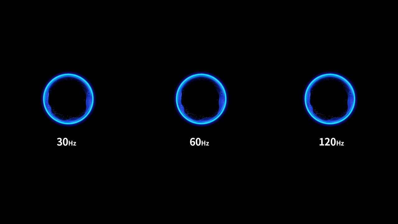 大家看内容的设备可能不支持高刷,所以特别做了一个效果对比各刷新下的画面,给你们形象的了解。