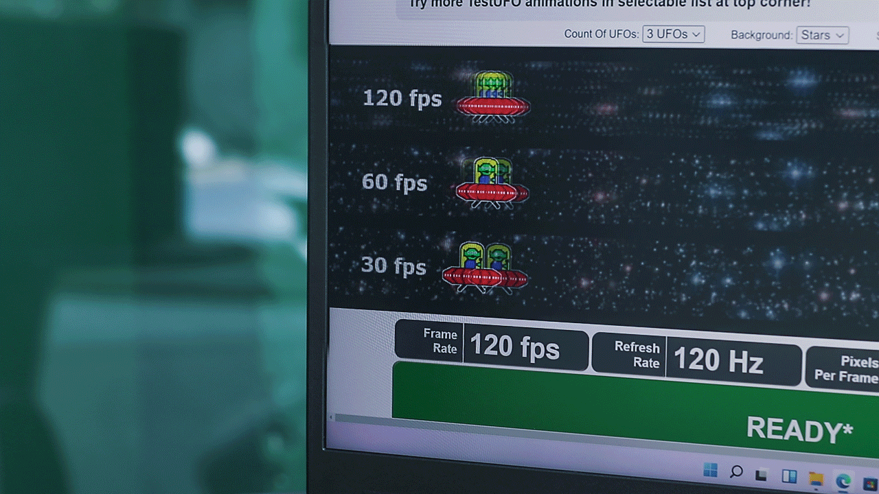 衡量一块屏幕的好坏是很多方面,除了创作本的使用需求外,它也是一块支持120Hz高刷的电竞级屏幕,通过页面测试,刷新的确达到了120Hz。