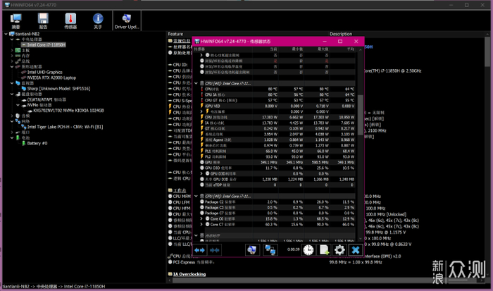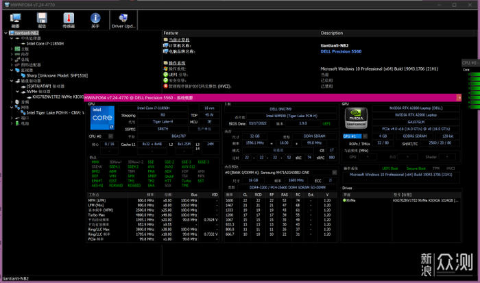 CPU: Intel 11850H 8C16T 10nm工艺 TDP 45W 最大睿频4.8G