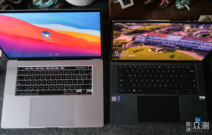 Precision型号里的第二个5表示尺寸,而DELL的15寸都是15.6英寸,所以正好的和MBP16尺寸相似。 面积dell稍小一圈,但厚度超出不少。新款的MBP也变厚了,目测和DELL就差不多厚的样子。重量实测是2kg,并不轻,