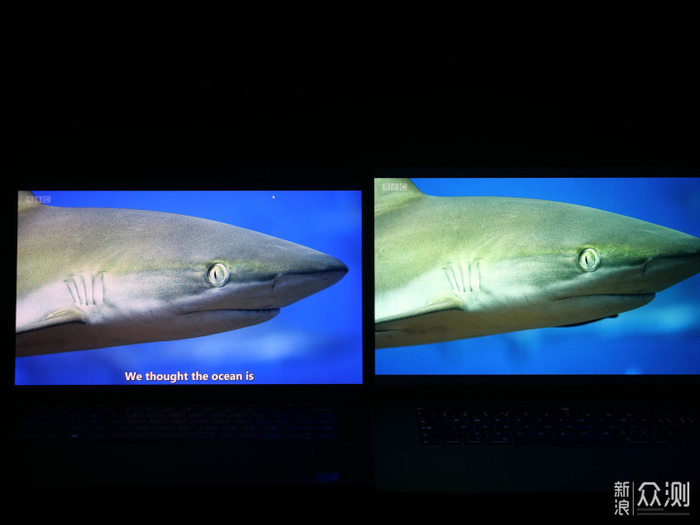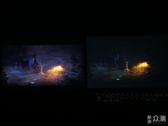 播放HDR影片,色彩看起来也不像桌面那么艳丽,注意高光部分的表现。和我的OLED便携屏比,观感上也没有差太多,作为LCD而言,我是比较满意了。右边的MBP因为播放器HDR转SDR的原因,看个意思就好,懒得再找个SDR片源做对比了。